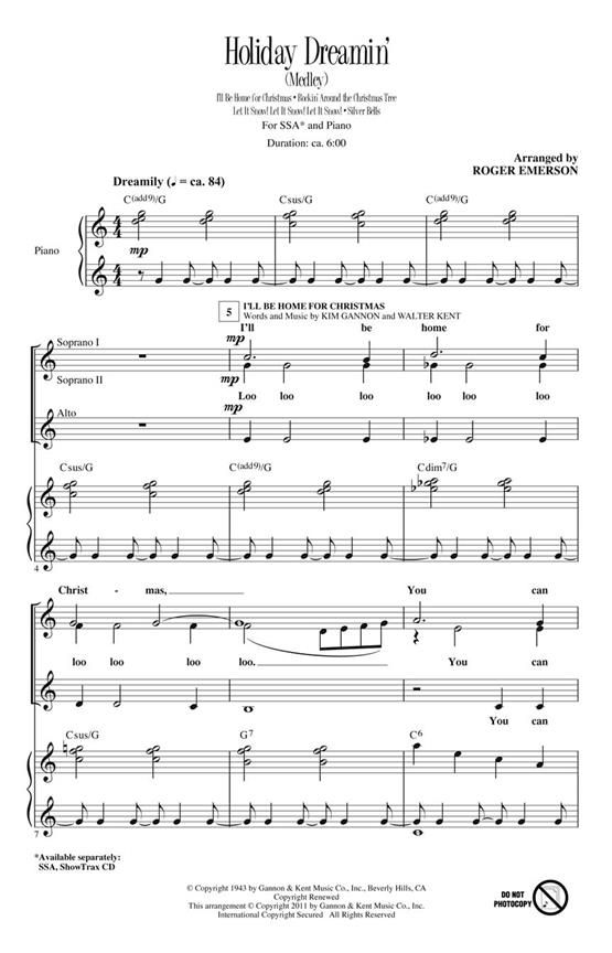 Youll create a magical Christmas dreamscape with this delightful 6-minute medley for SSA. Opening with the reflective I'll Be Home for Christmas, it moves into a bouncy boogie-woogie Rockin' Around the Christmas Tree, into a swing treatment of Let It Snow! Let It Snow! Let It Snow and the sweet waltz feel of Silver Bells. A gem!