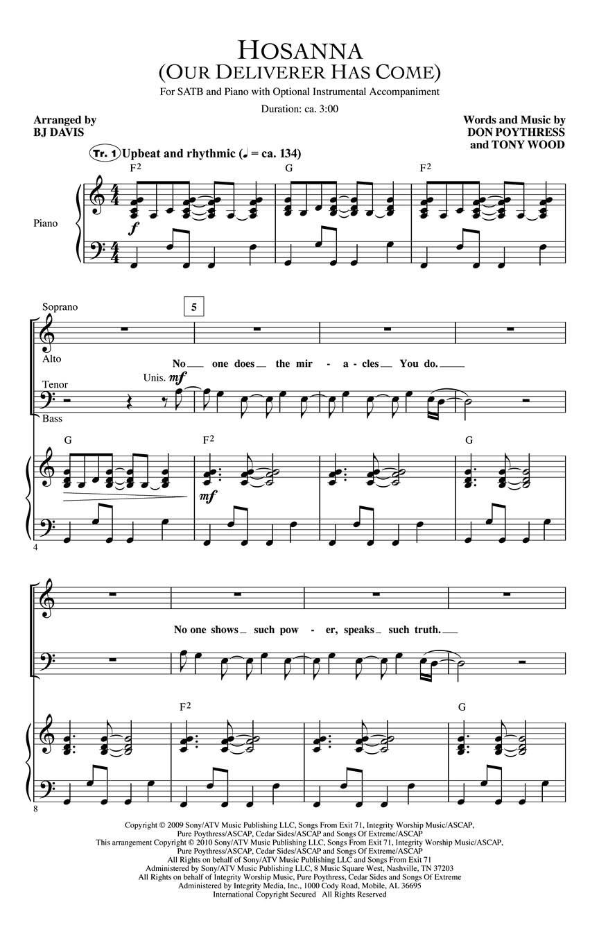 You have come to bring Your Kingdom now, set the captives free and so we bow. Hosanna, Hosanna, we bow down to heaven's Holy One, our Deliverer has come. Appropriate for any time of the year, and especially Palm Sunday. Available separately: SATB, CD Accompaniment Trax, Orchestration. Duration: ca. 3:00.