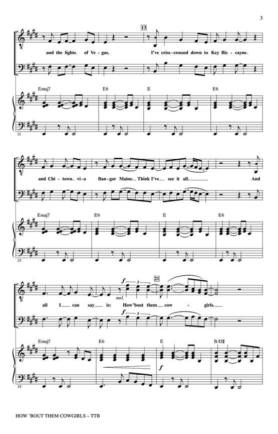 George Strait climbed straight to the top of the Country charts with this warm ballad that salutes cowgirls from Yellowstone to Niagara Falls and everywhere in between. It's sure to please audiences from coast to coast! Available separately: TTB, ShowTrax CD. Duration: ca. 3:50.