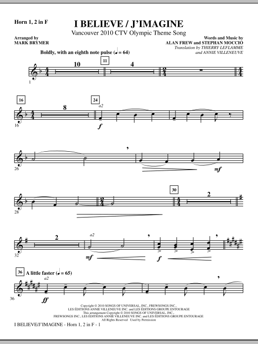 (Vancouver 2010 CTV Olympic Theme Song) - F Horn 1,2