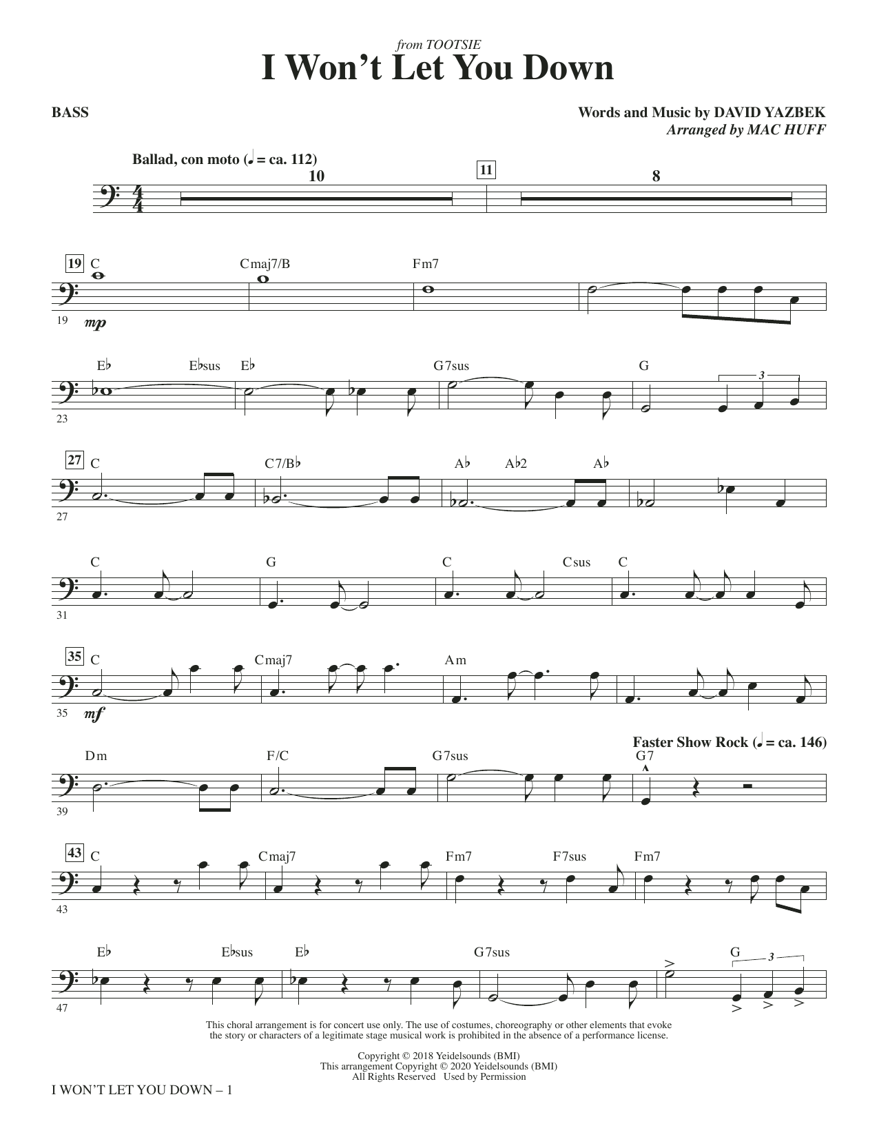 Broadway veteran David Yazbek hasn't written original music for a production that didn't go on to be nominated for Best Original Score at the Tony Awards. This astonishing 5-for-5 streak is currently capped by his work on Tootsie, a musical adaptation of the 1982 film of the same name. I Won't Let You Down is an in-show audition piece, starting out lethargic, but morphing into something grandiose and memorable by the end--a showstopper!