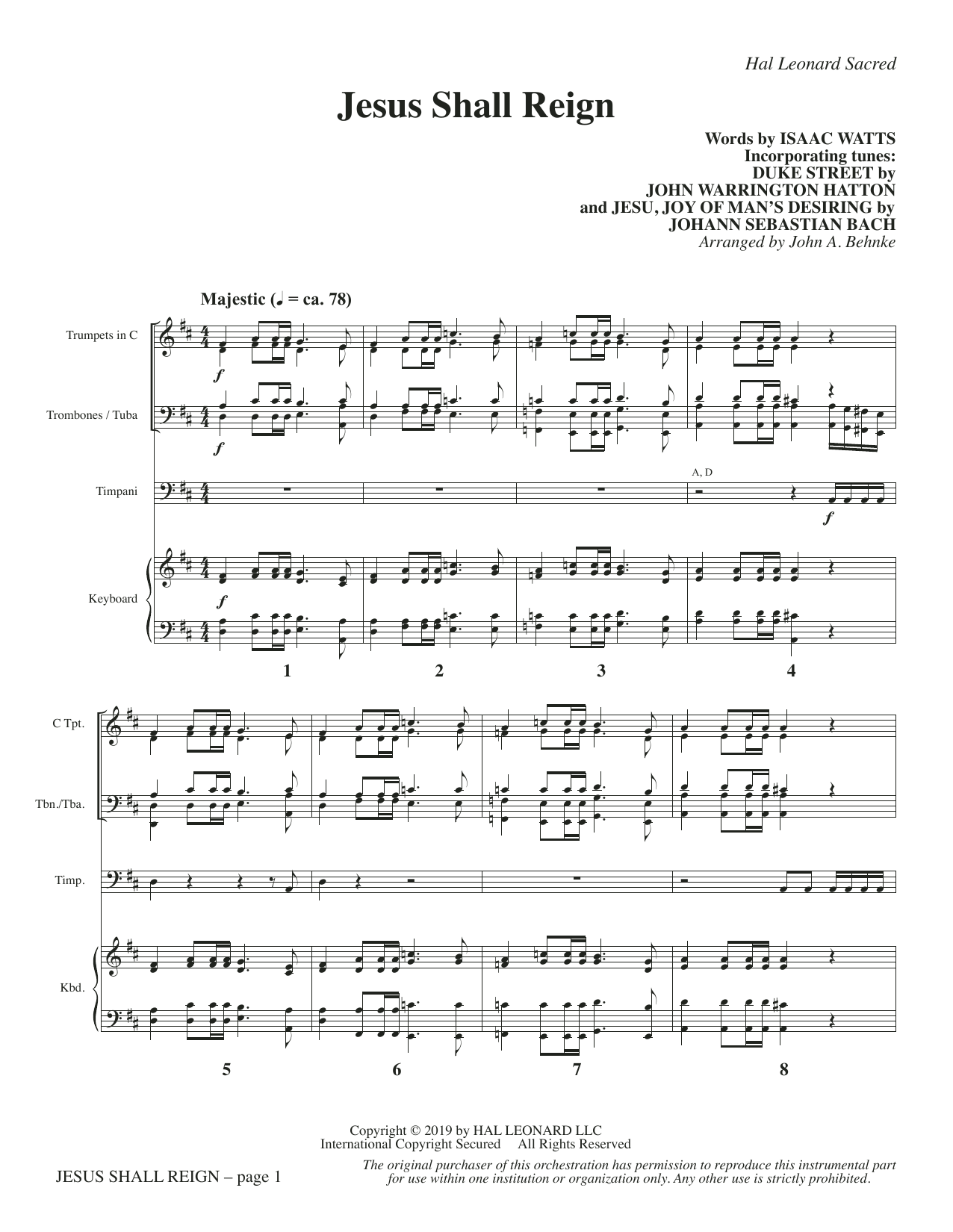 Majestic and regal, this concept anthem is highly effective! Combining a beloved hymn with the classic Jesu, Joy of Man's Desiring creates a soaring anthem that brings visions of cathedrals and lofty spires. Approachable vocal writing opens up the octavo to choirs of many sizes while craftily ensuring a fulfilling musical impact. Brass and timpani complete the package, making this a quintessential service piece for Christ the King Sunday. Highly recommended! Score and Parts (tpt 1-2, tbn 1-2, tba, timp) available as a digital download.