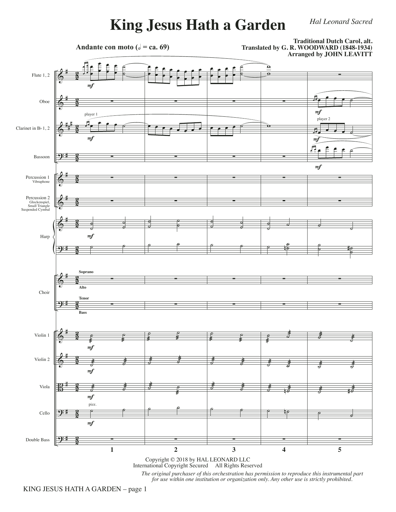 A historically significant sacred text often sung at Christmas is actually usable throughout the year. Springing from a traditional Dutch carol, the arrangement captures the elegance of the lyrics and a supportive accompaniment makes quick study of the learning. Moments of choral division build shimmering towers of luscious sound. A cathedral-worthy ending! Score and Parts (fl 1-2, ob, cl 1-2, bn, perc 1-2, hp, vn 1-2, va, vc, db) available as a digital download.