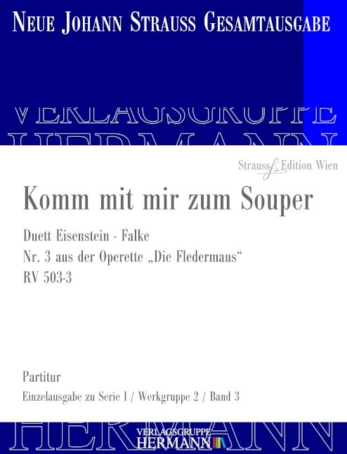 Zu den erschienenen Bühnenwerken von Johann Strauss sind Partituren ausgewählter Einzeltitel käuflich erhältlich. Sie enthalten den Notentext der Bände aus der Neuen Johann Strauss Gesamtausgabe mit einem vorangestellten Editionsartikel. Zu jeder Partitur ist das passende Orchestermaterial leihweise sowie der Klavierauszug käuflich und leihweise erhältlich. Die Notenseiten der Orchesterstimmen und des Klavierauszuges wurden ebenso wie bei der Partitur dem Aufführungsmaterial der Gesamtausgabe entnommen.Sekundärtitel: Ein Souper uns heute winkt
