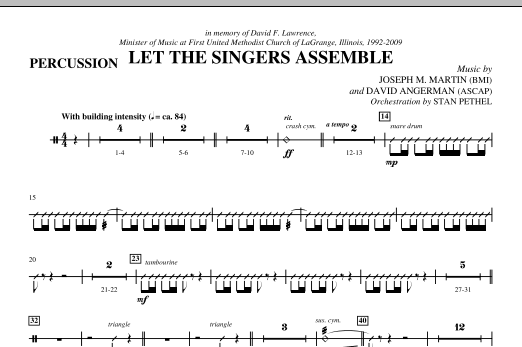 This admonition from Scripture is an exciting opener for any worship service or sacred concert. Bold leaps and dotted rhythms create aregal call to worship and praise. Brass, organ and percussion complete the package.