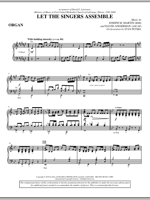 This admonition from Scripture is an exciting opener for any worship service or sacred concert. Bold leaps and dotted rhythms create aregal call to worship and praise. Brass, organ and percussion complete the package.