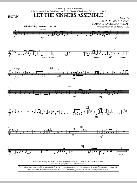 This admonition from Scripture is an exciting opener for any worship service or sacred concert. Bold leaps and dotted rhythms create aregal call to worship and praise. Brass, organ and percussion complete the package.
