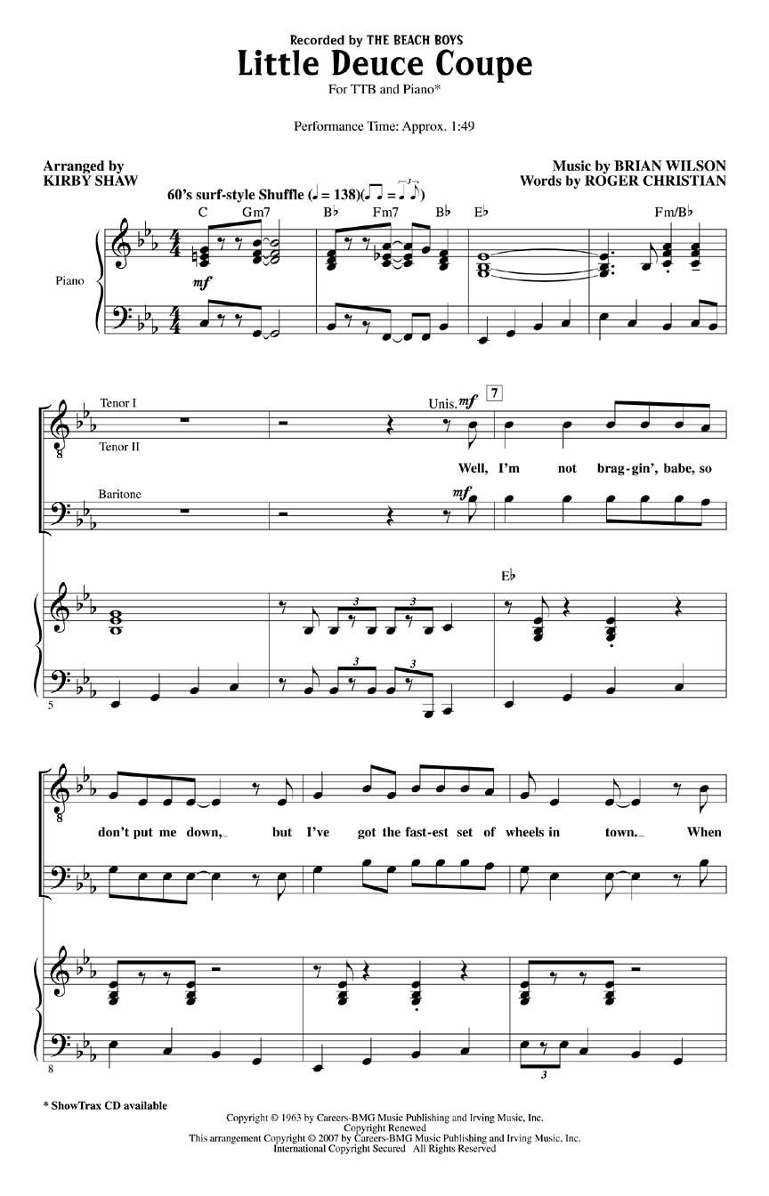 Fast wheels, four-on-the-floor - your guys will really respond to this 1963 Beach Boys favorite. A great motivational choice! Available for TTB and ShowTrax CD. Performance Time: Approx. 1:49.