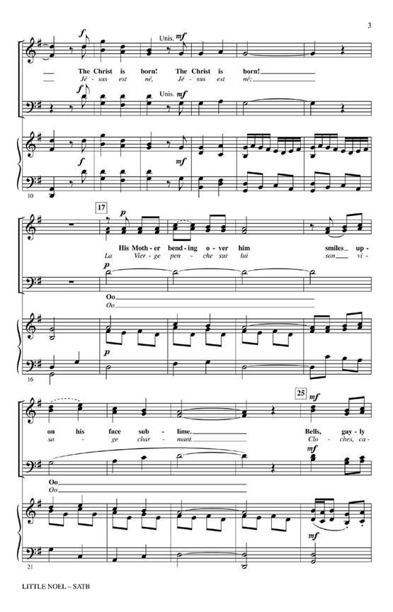 John Leavitt has created a fresh and sparkling setting of the Emile Louis Petit Noël. Perform it with either piano or chamber orchestra for a delightful retelling of the Nativity story. Available separately: SATB and SA. Instrumental ePak includes score and parts for Flute 1 & 2, Oboe, Bb Clarinet 1 & 2, Bassoon, Percussion 1 & 2, Harp, Violin 1 & 2, Viola, Cello and String Bass. ChoirTrax CD also available. Performance Time: Approx. 2:00