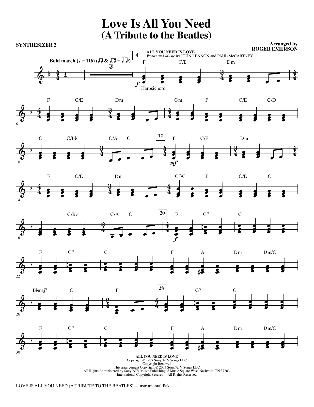For three generations, singers and fans have enjoyed the music of the Beatles. This 17 minute feature medley is a salute to the music and the musicians who created the songs that make up the soundtrack of our lives. Includes Parts for: Bb clarinet, Bb trumpet 1 & 2, Tenor Sax, Trombone, Synthesizer 1 & 2, Rhythm Guitar, Lead Guitar, Drum Set and Percussion.