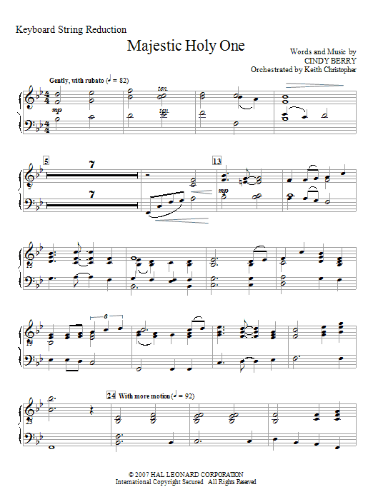 Cindy Berry's signature style of worshipful choral music is evident in this statement of devotion and praise. In all I say, in all I do, Lord, may my life bring praise and glory to You, majestic holy One. Beginning in a quiet reflective style, the verses grow to the majestic chorus, My God and King, to You I sing. To You I lift my voice to magnify Your name. Choir and congregation alike will be uplifted by the message and music, worth repeating any season of the year. BonusTrax CD available.