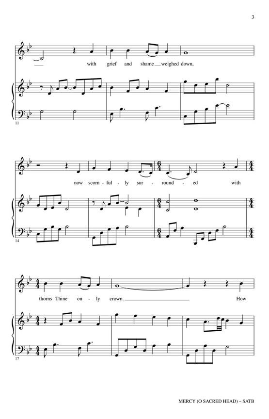 Uses: Good Friday, Holy Week Scripture: Micah 7:18; Matthew 27:28-29; Ephesians 2:4-5 A melancholy piano introduction sets the stage for an emotional Holy Week composition filled with drama and pathos. The beloved theme and text of the Passion Chorale is woven into the opening tapestry of this dramatic anthem before surrendering to a more modern chorus that pleas for mercy and forgiveness. Through repetition and careful pacing, deep emotion and conviction are felt in every note. Impactful and heartfelt! Score and Parts (fl, cl, hn 1-2, perc, pno, gtr/b, dm, hp, vn 1-2, va, vc, db) available as a digital download.
