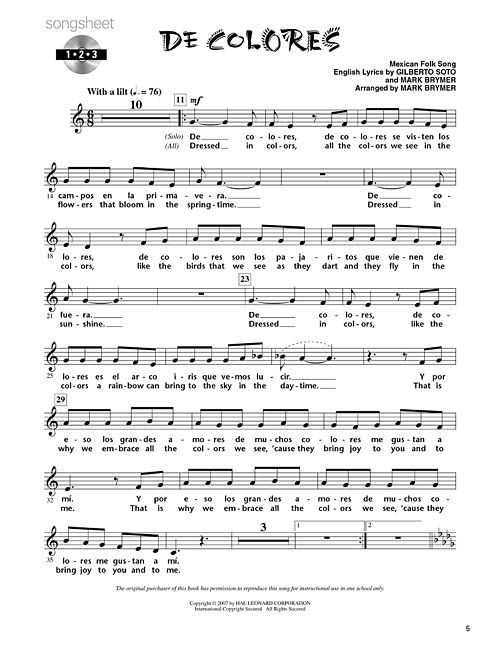 Experience Mexico's rich cultural heritage and traditions with this unique collection of 8 children's songs that have been passed down for many generations in Mexican households, schools and communities. The people of Mexico are very festive and love to sing, play instruments, dance and celebrate throughout the year, especially with their children. Learning cultural songs begins at an early age for children in Mexico because of music's direct connection to their heritage. Each song includes Spanish and English lyrics with an accompanying lesson plan, and a reproducible student article and activity sheet for expanded learning. Promote cross-cultural education and reinforcing language skills while focusing on the principal objective of having fun learning and singing these cultural songs. The performance/accompaniment recording also includes separate pronunciation guide tracks for each song. For budget-saving value, the Classroom Kit offers a Teacher book and P/A CD. Available: Teacher Edition (with reproducible pages), Performance/Accompaniment CD, Classroom Kit (Teacher and P/A CD). For Gr. 1-6.