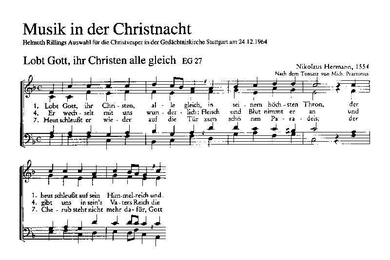 Helmuth Rillings Auswahl für die Christvesper in der Gedächtniskirche Stuttgart am 24. Dezember 1964