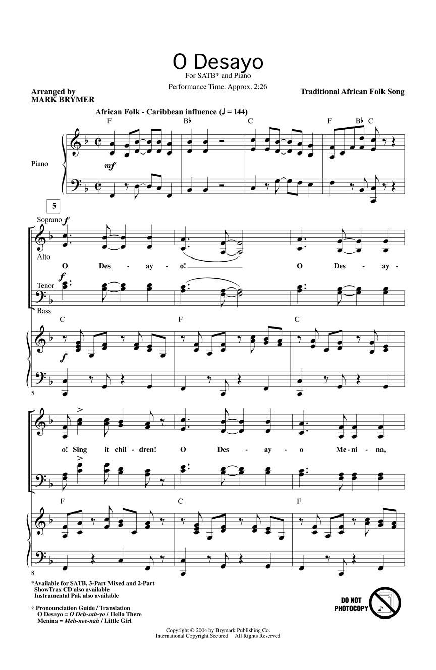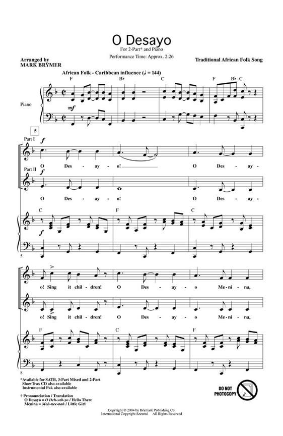 This traditional Angolan greeting song uses easily-learned Bantu and Portuguese phrases along with English verses. Add the drum accompaniment or use the ShowTrax CD for additional authenticity. Available for SATB, 3-Part Mixed, and Two Part. Approx. performance time: 2:26.