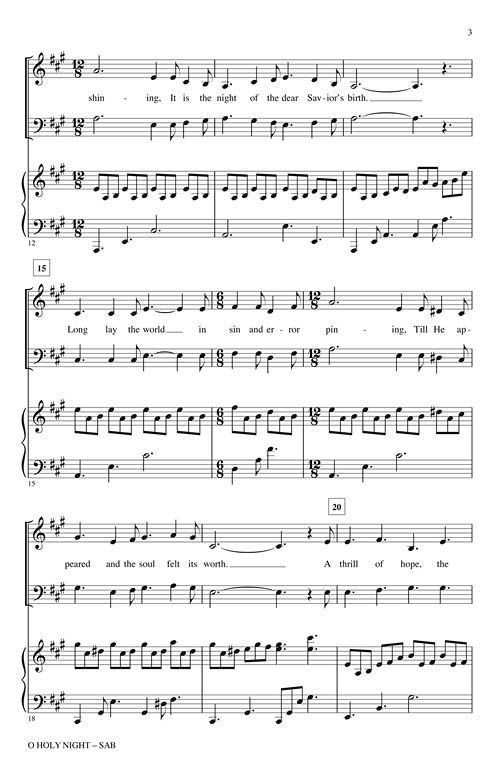 This best-selling anthem now has an SAB voicing an expanded instrumentation, and new ChoirTrax with SATB split-trax. This tender setting is perfect for Christmas Eve or any December service. Available separately: SATB, SAB, SSA, ChoirTrax CD. Score and parts (fl, ob, cl, bn, perc, pno, vn 1-2, va, vc, db) available as a CD-ROM. Duration: ca. 3:25.