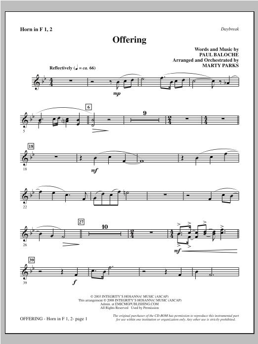 This modern worship song by Paul Baloche has become a staple for congregations everywhere. Here it is in an accessible SAB voicing, masterfully arranged by Marty Parks. Choirs of any size will embrace this music and message. Available separately: SAB, ChoirTrax CD. Score and parts (hn 1-2, perc 1-3, rhythm, vn 1-2, va, vc, db) available as a CD-ROM. Duration: ca. 3:55.
