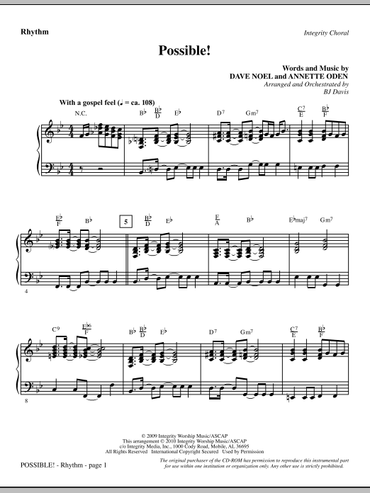 This up-tempo song by Annette Oden and Dave Noel talks about how anything is possible with Jesus in control. Creatively arranged by BJ Davis. Available separately: SATB, CD Accompaniment Trax, Orchestration. Duration: ca. 3:15.