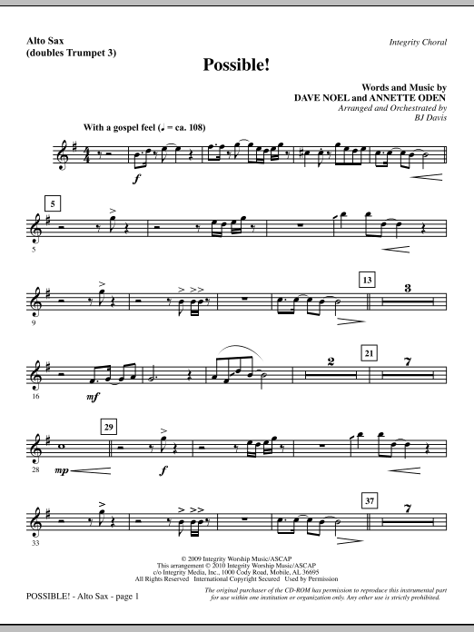 This up-tempo song by Annette Oden and Dave Noel talks about how anything is possible with Jesus in control. Creatively arranged by BJ Davis. Available separately: SATB, CD Accompaniment Trax, Orchestration. Duration: ca. 3:15.
