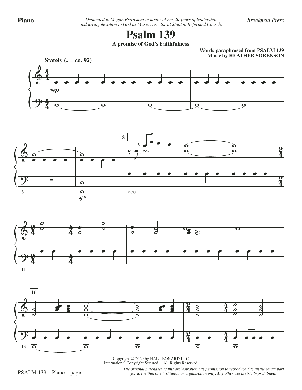 Each measure of this inspiring psalm setting is filled with intention and nuance. A new addition to the composer's series featuring anthems inspired by the Psalter, this is a piece of inspired writing. The abundant melodic material closely follows the spiritual context of the message, reaching out with the assurance of God's presence in every aspect of our lives. Many occasions are worthy of this affirmation and the lofty musical elements are concert worthy for choirs of distinction. Moving!
