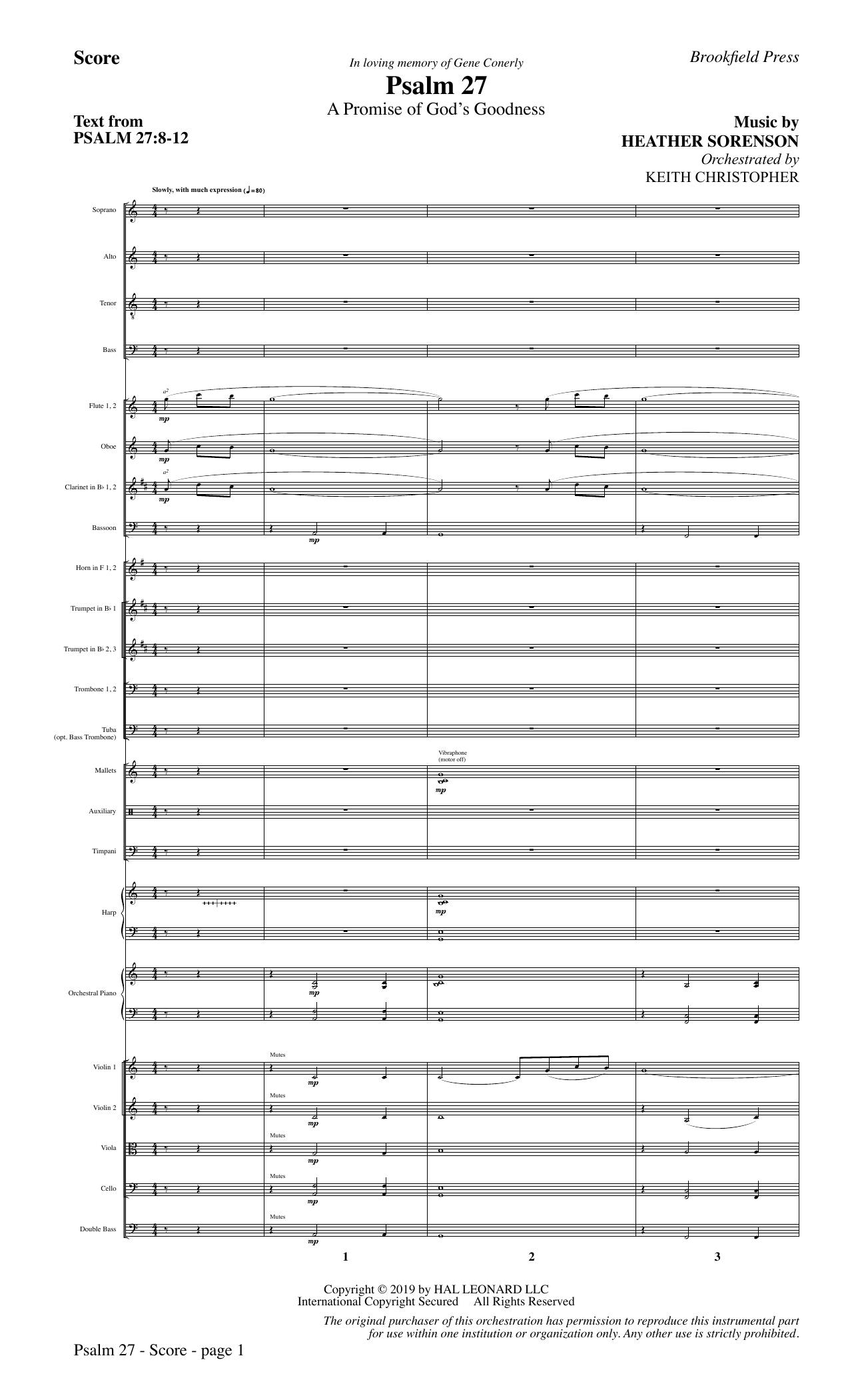 This new addition to the composer's settings from The Psalter evolves organically with artistic melodic lines and exquisite harmonic colors. The promise of God's faithfulness to provide for us takes center stage in this scripture passage. The words lead the way and the music follows, rising and falling with evocative word painting and a wide dynamic range. Explore the choral potential of your group with this distinctive octavo. Score and Parts (fl 1-2/picc, ob, cl 1-2, bn, tpt 1-3, hn 1-2, tbn 1-2, tba/btbn, perc 1-2, timp, hp, pno, vn 1-2, va, vc, db) available as a digital download.