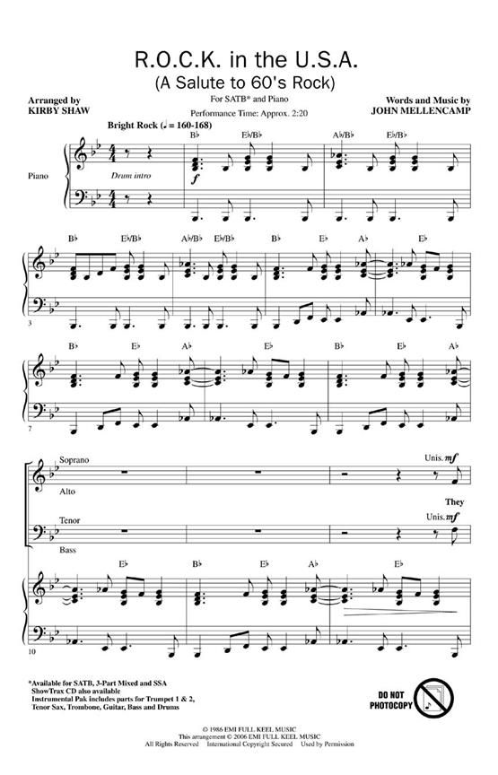 All the power of rock & roll explodes in this John Mellencamp powerhouse salute to the music of an earlier time. A great concert theme and dance showcase. Performance Time: Approx. 2:20. Available for SATB, 3-Part Mixed, SSA, ShowTrax CD and Instrumental ePak (Parts for Trumpet I & II, Tenor Sax, Trombone, Guitar, Bass and Drums).
