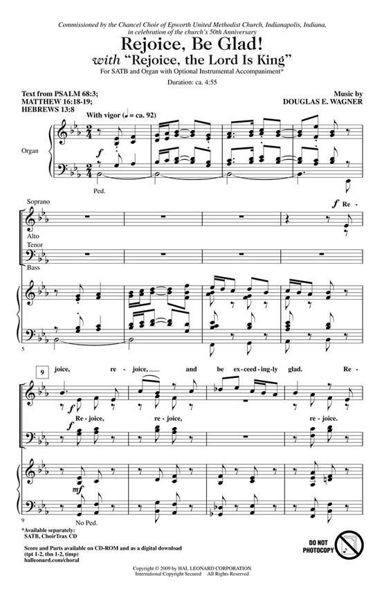 An appropriate celebratory piece for any time of the church year, this through-composed anthem provides for congregational participation on Rejoice, the Lord Is King just prior to the dramatic and final conclusion. Available separately: SATB, ChoirTrax CD. Score and Parts (tpt 1-2, tbn 1-2, perc) available on CD-ROM. Duration: ca. 4:50.