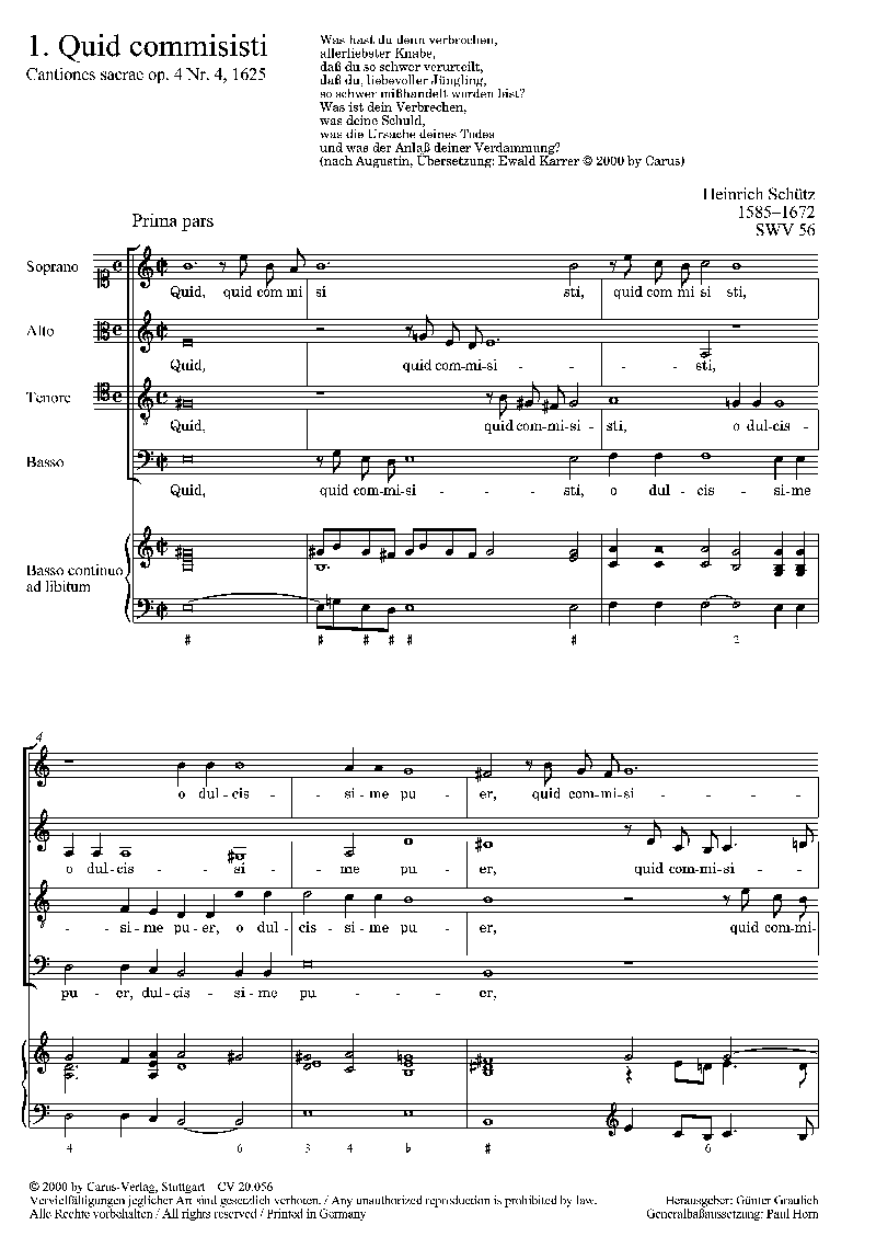 Fünf lateinische Passionsmotetten aus Schütz' Cantiones-sacrae-Druck op. 4 von 1624 in der bewährten Tradition der Stuttgarter Schütz-Ausgaben.