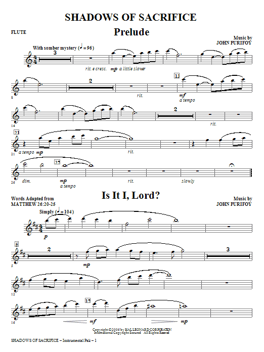 John Purifoy interweaves hymn texts and Scripture with beautiful music to create an unforgettable and emotion-filled Tenebrae experience. From the pensive Is it I, Lord? to the dramatic Father, Forgive Them, the music and text blend to tell the story in a most powerful way. Narration and service suggestions included. Instrumental ePak includes score and parts for Flute, Oboe, English Horn, Percussion, Harp, Violin 1, 2, Viola, Cello and Contrabass. ChoirTrax CD also available. Performance Time: Approx. 20 minutes