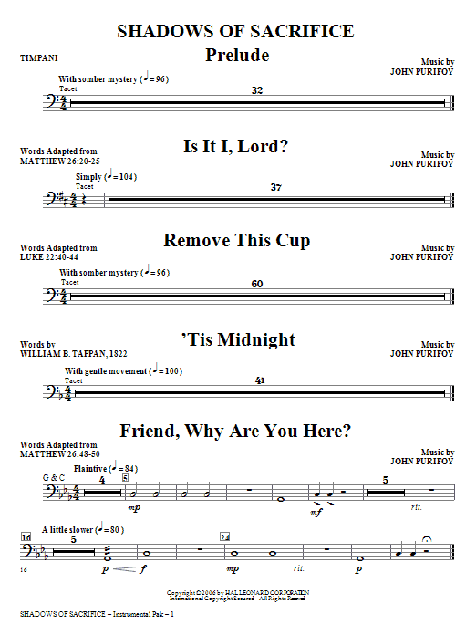 John Purifoy interweaves hymn texts and Scripture with beautiful music to create an unforgettable and emotion-filled Tenebrae experience. From the pensive Is it I, Lord? to the dramatic Father, Forgive Them, the music and text blend to tell the story in a most powerful way. Narration and service suggestions included. Instrumental ePak includes score and parts for Flute, Oboe, English Horn, Percussion, Harp, Violin 1, 2, Viola, Cello and Contrabass. ChoirTrax CD also available. Performance Time: Approx. 20 minutes