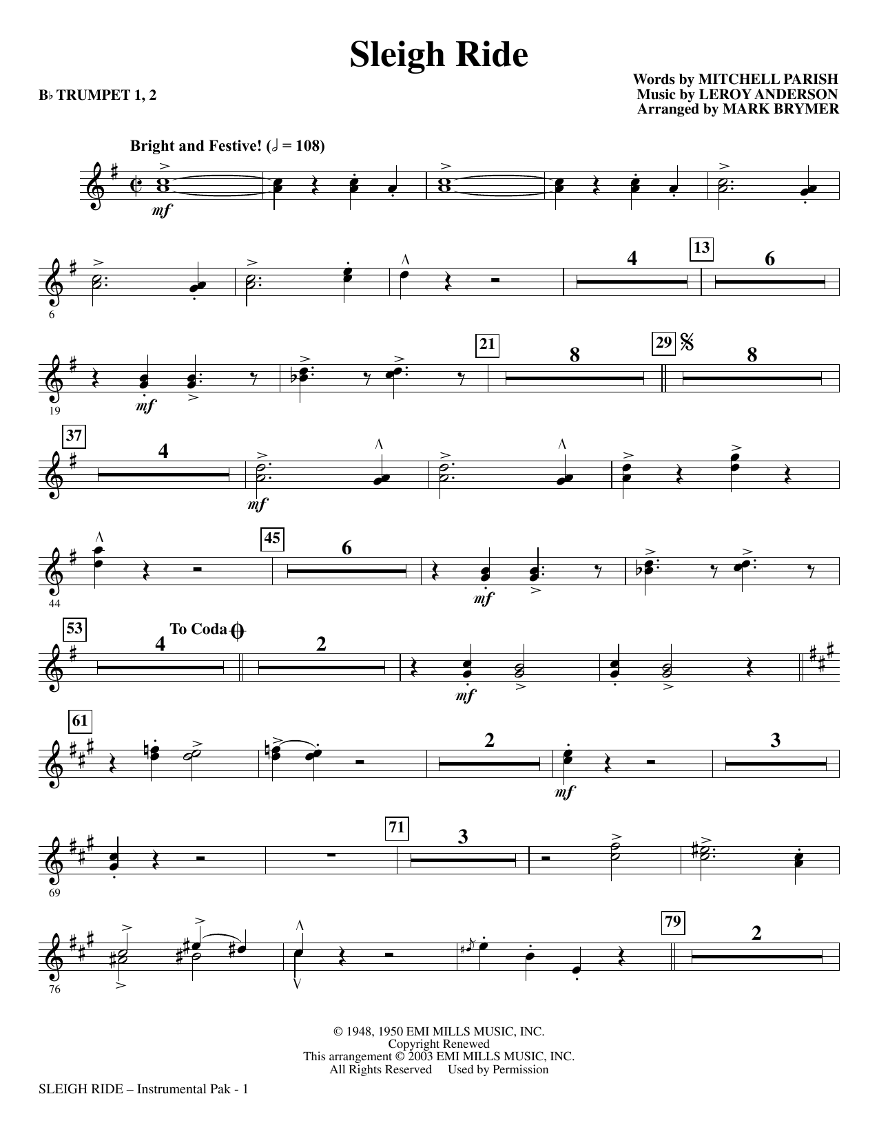 Here is Leroy Anderson's sparkling holiday treasure Sleigh Ride in an exciting new setting by Mark Brymer. Few songs so completely capture the joy shared by family and friends during the winter season. A fantastic holiday romp!