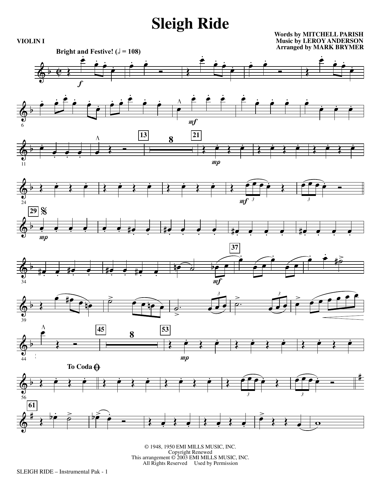 Here is Leroy Anderson's sparkling holiday treasure Sleigh Ride in an exciting new setting by Mark Brymer. Few songs so completely capture the joy shared by family and friends during the winter season. A fantastic holiday romp!