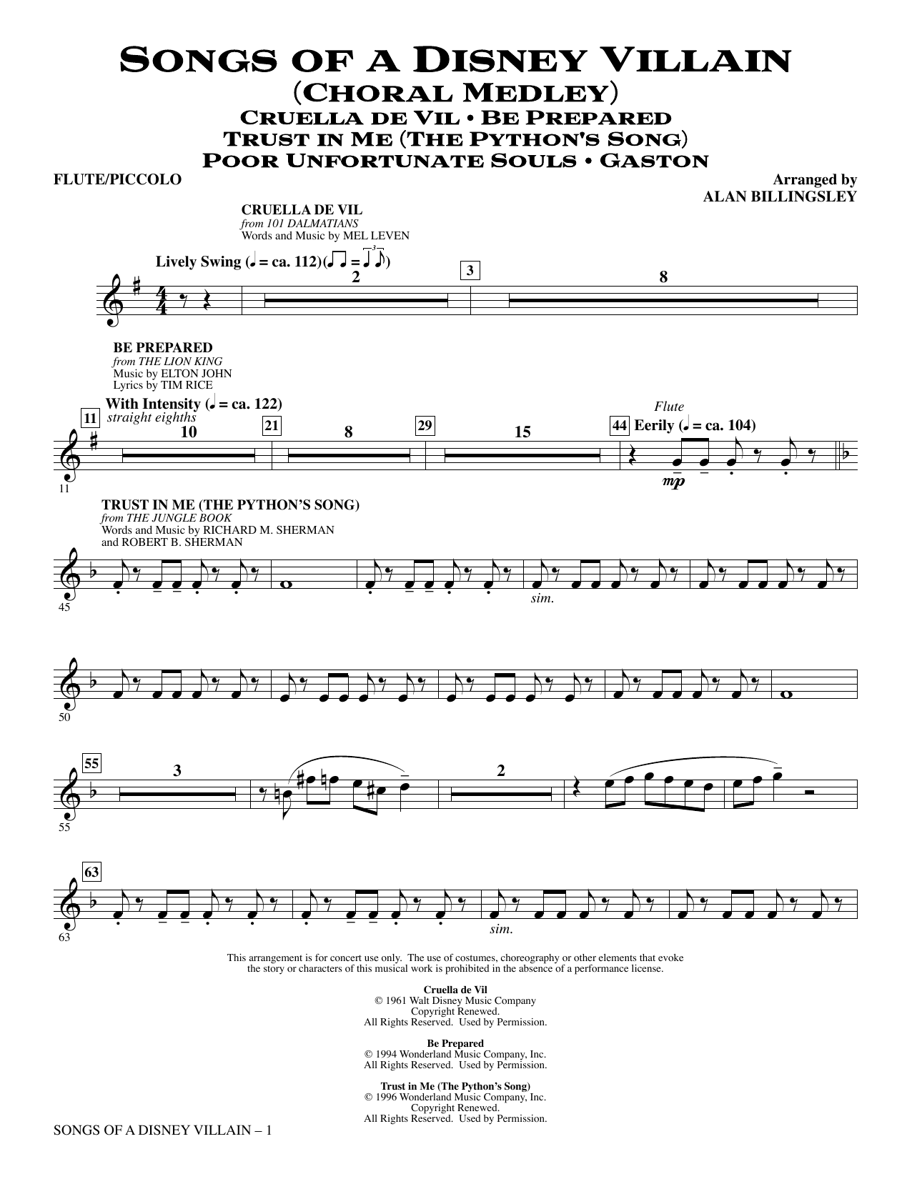 Every good story needs a good villain and Disney has created some of the best. Here are five great songs that are sung by the characters we love to hate--Cruella de Vil from 101 Dalmations, Gaston from Beauty and the Beast, the Python from The Jungle Book, Ursula from The Little Mermaid, and Scar from The Lion King.