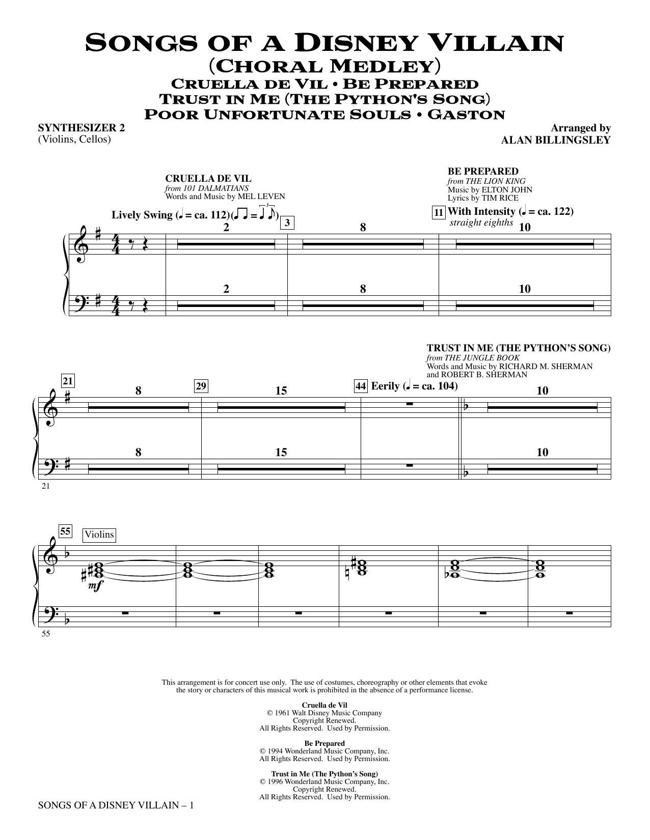 Every good story needs a good villain and Disney has created some of the best. Here are five great songs that are sung by the characters we love to hate--Cruella de Vil from 101 Dalmations, Gaston from Beauty and the Beast, the Python from The Jungle Book, Ursula from The Little Mermaid, and Scar from The Lion King.