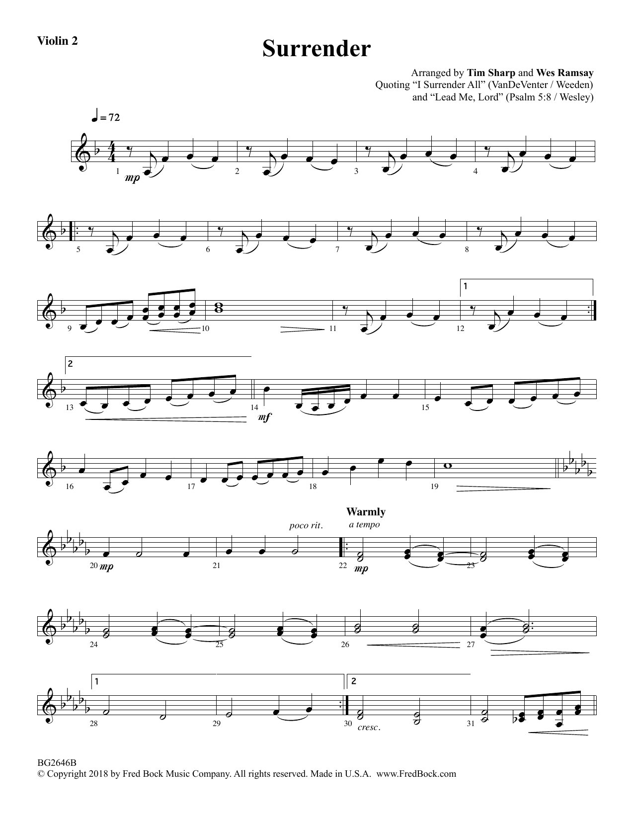 Zwei wunderschöne Hymnen, I Surrender All und Lead Me, Lord, wurden von zwei hervorragenden Musikern, Tim Sharp und Wes Ramsay, ergänzt und erweitert. Begleitet von Klavier und Violine, können Sie auch ein Streichorchester hinzufügen (separat erhältlich). Der Text berührt fast alle Jahreszeiten, besonders aber die Fastenzeit und das Abendmahl. Leichter bis mittlerer Schwierigkeitsgrad.