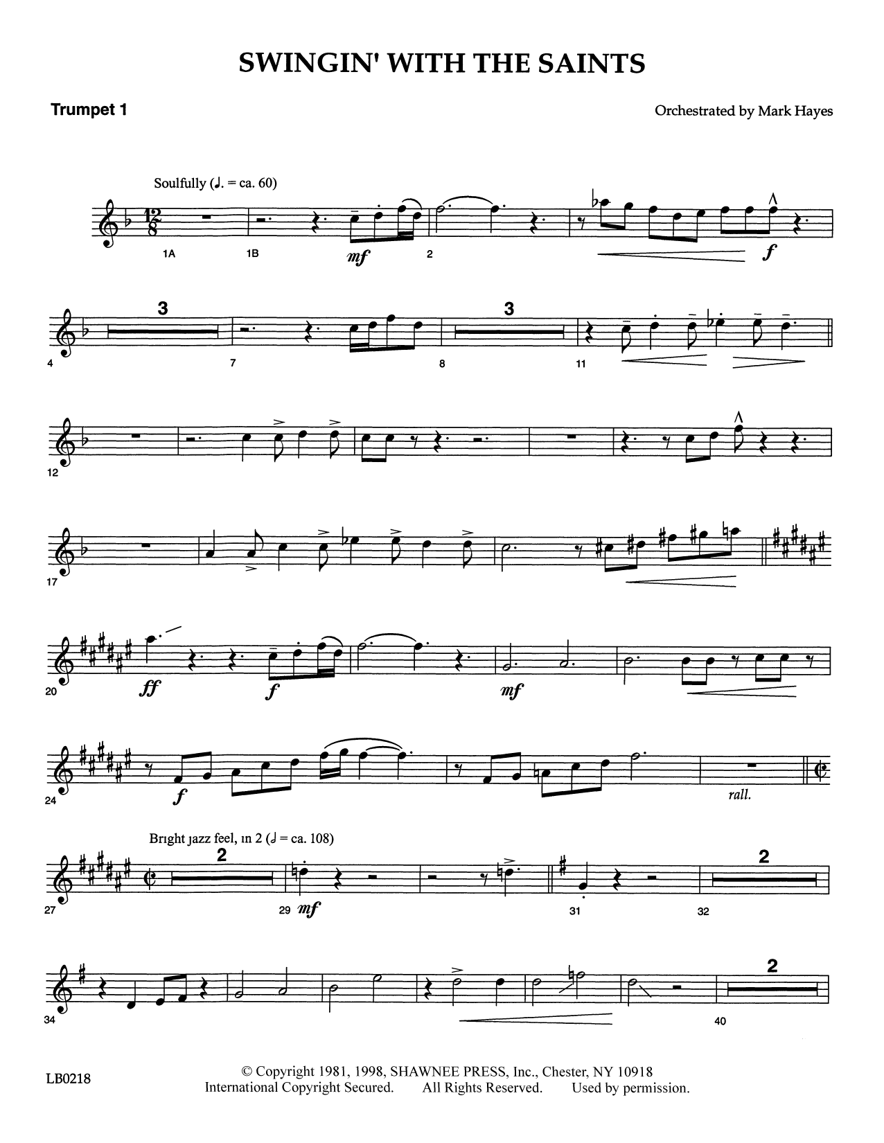 Swing Low, Sweet Chariot and When the Saints Go Marching In really belong together in this dynamic, soulful setting, which contrasts the two classic spirituals in such an exciting way that your choir won't want it toend! Skillfully arranged for singers. Available separately: SATB, SAB, 2-part, TTB, SSA, Instrumental Accompaniment (Score, Bass, Trombone 1, Trombone 2, Bass Trombone, Percussion, Drums, Electric Guitar, Alto Sax 1, Alto Sax 2, Tenor Sax 1, Tenor Sax 2, Baritone Sax, Trumpet 1, Trumpet 2, Trumpet 3), StudioTrax A/P CD.