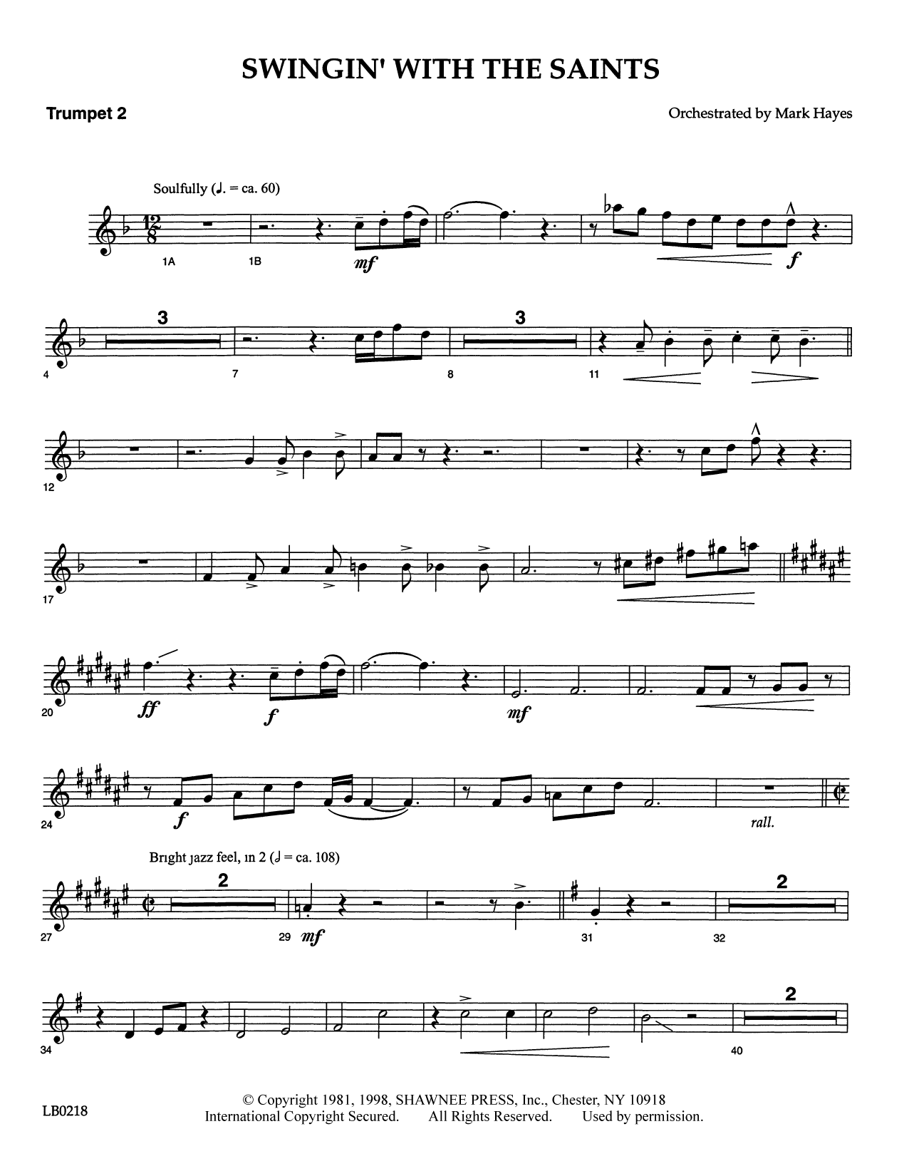 Swing Low, Sweet Chariot and When the Saints Go Marching In really belong together in this dynamic, soulful setting, which contrasts the two classic spirituals in such an exciting way that your choir won't want it toend! Skillfully arranged for singers. Available separately: SATB, SAB, 2-part, TTB, SSA, Instrumental Accompaniment (Score, Bass, Trombone 1, Trombone 2, Bass Trombone, Percussion, Drums, Electric Guitar, Alto Sax 1, Alto Sax 2, Tenor Sax 1, Tenor Sax 2, Baritone Sax, Trumpet 1, Trumpet 2, Trumpet 3), StudioTrax A/P CD.