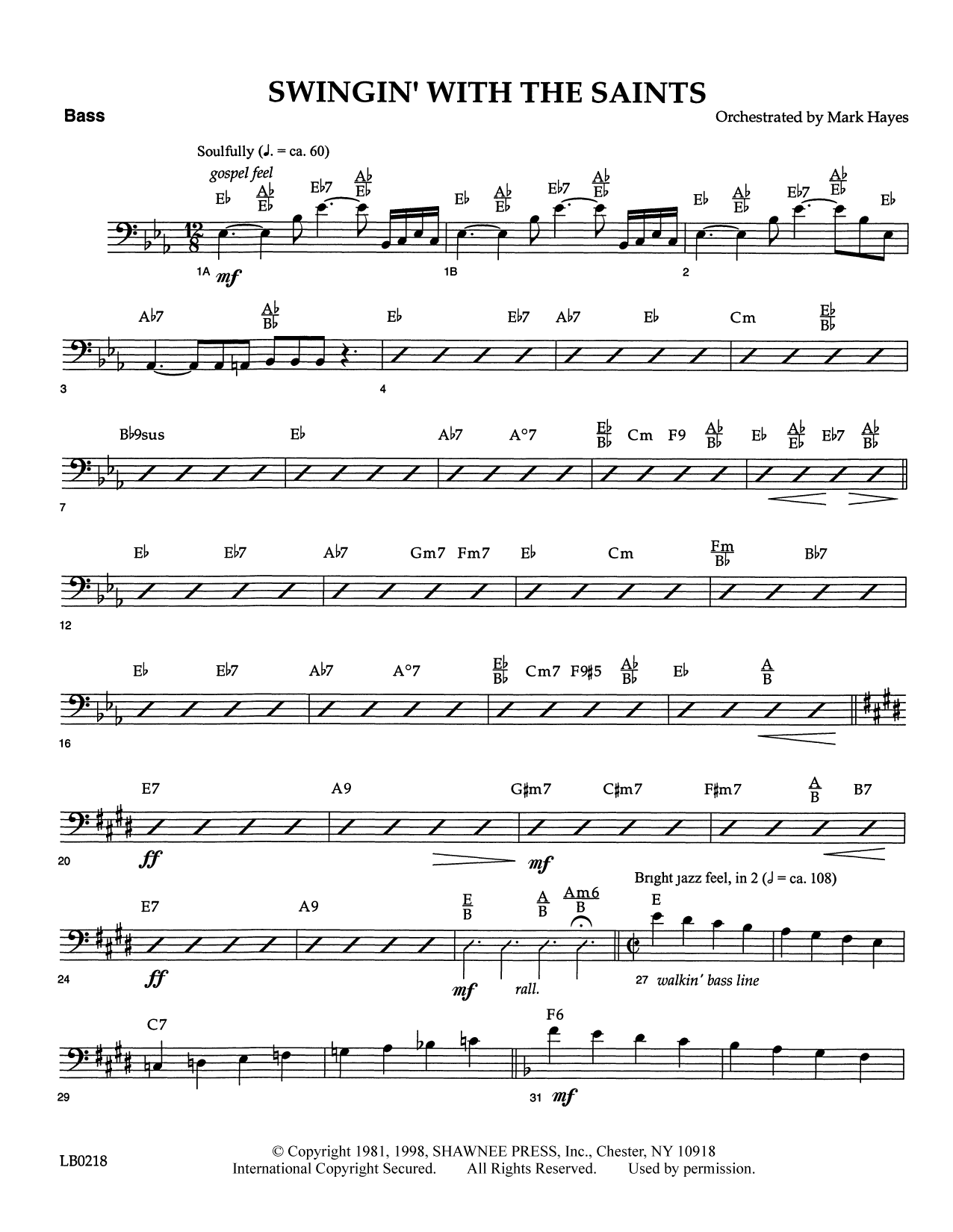 Swing Low, Sweet Chariot and When the Saints Go Marching In really belong together in this dynamic, soulful setting, which contrasts the two classic spirituals in such an exciting way that your choir won't want it toend! Skillfully arranged for singers. Available separately: SATB, SAB, 2-part, TTB, SSA, Instrumental Accompaniment (Score, Bass, Trombone 1, Trombone 2, Bass Trombone, Percussion, Drums, Electric Guitar, Alto Sax 1, Alto Sax 2, Tenor Sax 1, Tenor Sax 2, Baritone Sax, Trumpet 1, Trumpet 2, Trumpet 3), StudioTrax A/P CD.