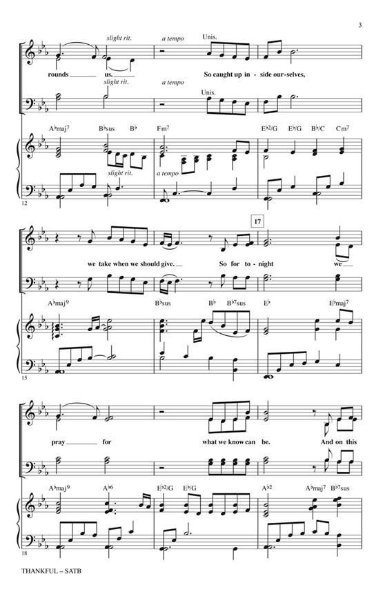 From the Josh Groban Noel CD comes this tender ballad reminds us to look around at the remember there's so much to be thankful for. Fettke's pairing with Thanks to God creates a beautiful choral expression for any time of thanksgiving. Available separately: SATB, ChoirTrax CD. Score and parts (fl, ob, cl, tpt 1-3, hn, tbn 1-2, tbn 3/tba, perc, dm, hp, rhythm, vn 1-2, va, vc, db) available as a CD-ROM. Duration: ca. 5:00.
