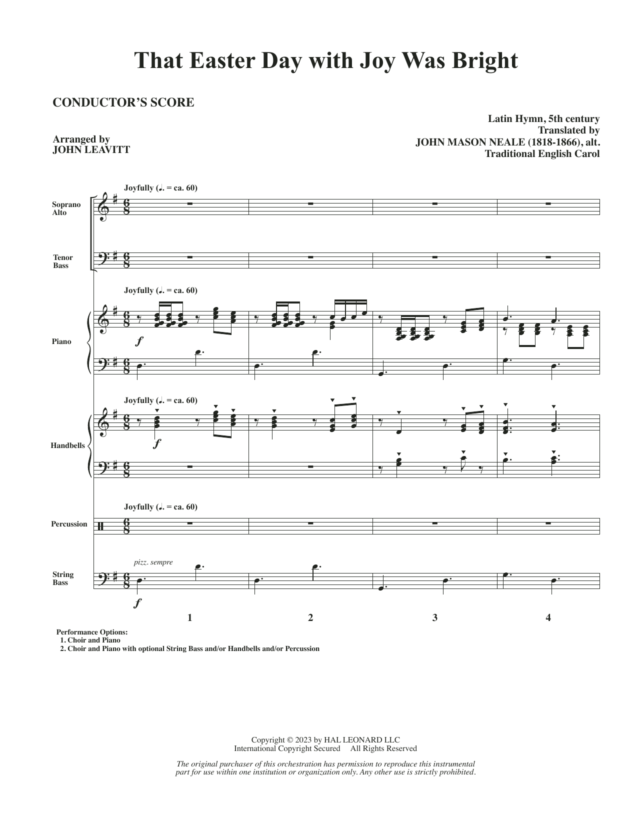 A beloved seasonal melody is given an sparkling makeover in this festive octavo! Leaping and dancing effortlessly from the page to the listener's heart, this elegant choral makes a jubilant addition to any Easter service. Score and Parts (hbls (3-4 oct., 28-29 bells,) perc, stb) available as a digital download.