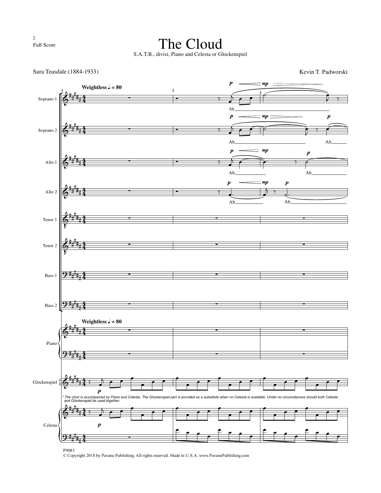 If there ever was a piece that describes a text in song, this is it. Sara Teasdale's descriptive words about the clouds become sound in this exquisite composition. Accompanied by piano and celesta, a glockenspiel part is also provided for those who have no access to a celesta. Great for festivals or a concert at any season, this is a piece that is a joy to share. Medium in difficulty.