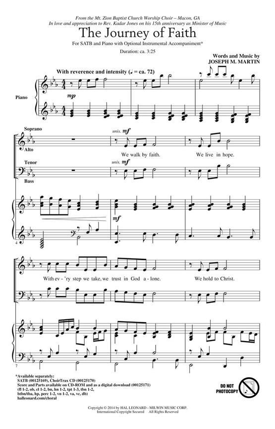 Uses: General Scripture: Proverbs 3:5-6; II Corinthians 5:7; I Peter 1:3-9 Living in hope and walking by faith are the themes of this original anthem from Joseph Martin. This affirming message will shine through as both choir and congregation are encouraged to put their trust in God alone.