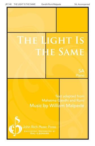Winner of the 2021 Music Unites the World Songwriting Contest, this piece was premiered by the Education Through Music LA Festival Choir. Drawing his text from Mahatma Gandhi and Rumi, Malpede transports an ageless message to the 21st century. The lesson of acceptance, love, and peace could not be more transparently simple, but the melody and harmony are captivating. Offered here in a setting conceived for children's voices, the piee has already successfully captivated adult singers.