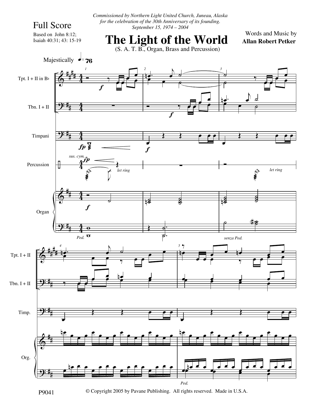 Commissioned by the Northern Light United Church in Alaska, this stirring piece lives up to its name. A brilliant fanfare sets the stage for this illuminating anthem. Brass and percussion parts available.