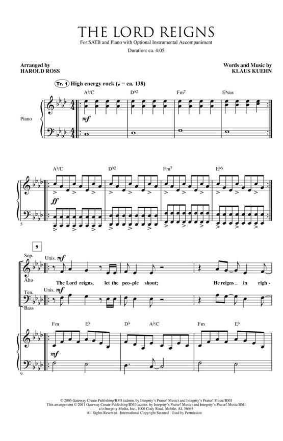 Full of energy and excitement, this arrangement by Harold Ross provides a time of celebratory worship declaring, The Lord reigns, let the people shout. You reign, forever King of all! Available separately: SATB, CD Accompaniment Trax, Orchestration. Duration: ca. 4:00.