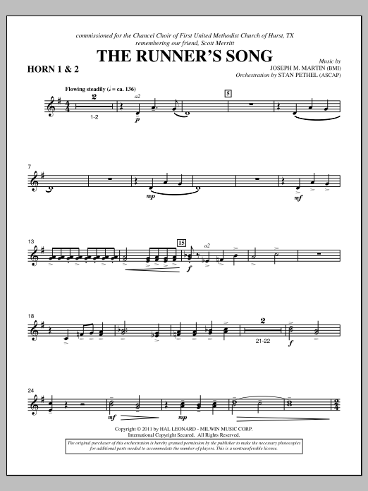 This commissioned anthem was written in memory of a runner who made an impact on the community of faith inwhich he participated. The composer wrote words that were specific to this work but also represented a larger truth to all believers. Finding Scriptures that enabled this perspective, he crafted an anthem that tonally paints theeffect of running the good race and even soaring with victory.