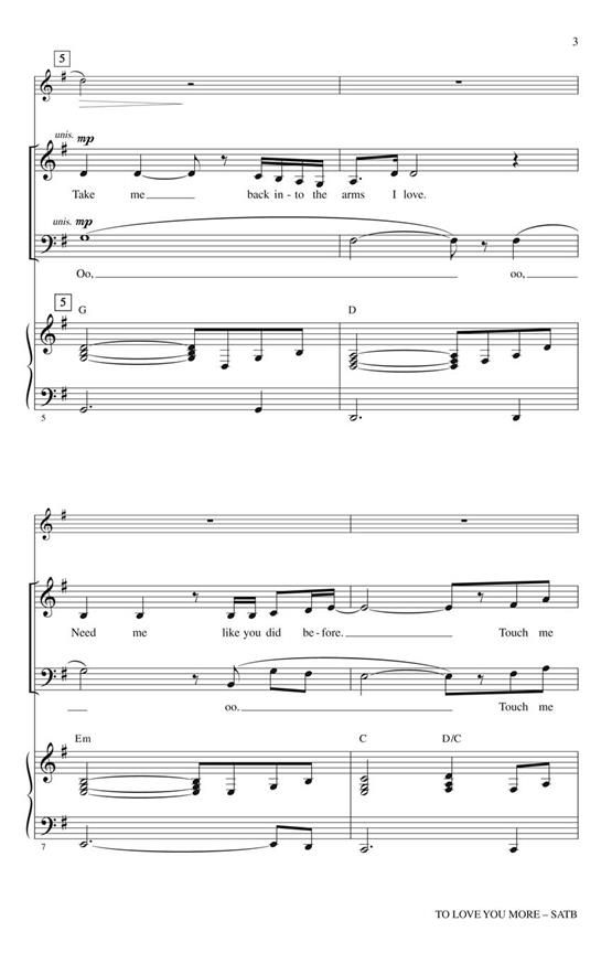 This 1998 hit by Celine Dion was memorably covered by Lea Michele on Glee in a powerful rendition that explored the depth of the emotional lyrics. This selection offers challenges and rewards for pop, jazz, show and concert choirs looking to create a touching concert moment! Ideal for Valentine's Day, prom or other romantic occasions!