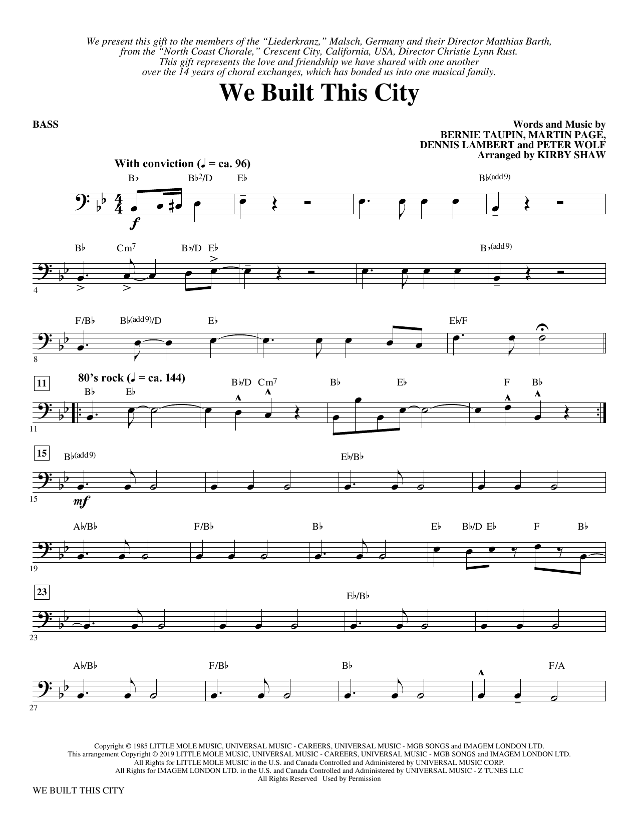 Classic rock and roll is here merged with Kirby Shaw harmonies and style. There is a history lesson in this song as there are many references to major musical cities across America that will be fun to discover. The song was released by the band Starship and there is much rock history to be uncovered about the band and the time.