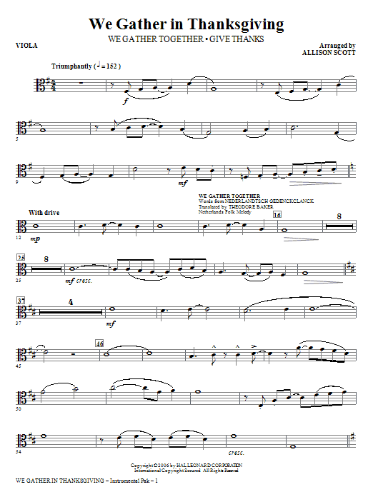We Gather Together and Give Thanks are paired in a fresh and rhythmic setting that is full of joy and praise. Available for SATB, SAB and SSA. Instrumental ePak includes score and parts for Guitar, Bass, Drums, Violin 1, 2, Viola, Cello and String Bass. ChoirTrax CD also available. Performance Time: Approx. 2:45