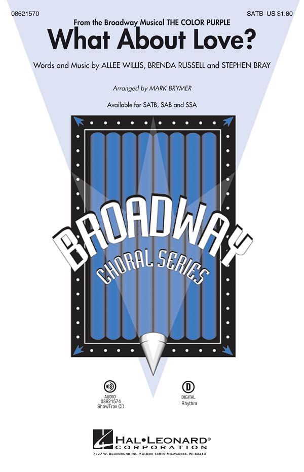 Here is a gospel-flavored ballad from the award-winning Broadway musical The Color Purple that sings of the redemptive power of love. The uplifting lyrics sing of joy, hope, tears, tenderness - indeed, the full range of emotion that connects us all as human beings. Ideal for graduation, pop and show choirs and many other concert occasions. Available separately: SATB, SAB, SSA, ShowTrax CD. Rhythm parts available digitally (gtr, b, syn, dm). Duration: ca. 4:00.